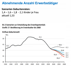 Die Arbeitswelt steht vor einer beispiellosen Herausforderung. Jedes Jahr fehlen uns 450.000 Fachkräfte. Die Ursache: Die demografische Entwicklung, bei der immer weniger Erwerbstätige immer mehr Rentnerinnen und Rentner unterstützen müssen. Der Generationenvertrag, der die Altersversorgung über die Rentenversicherungsbeiträge sicherstellen sollte, gerät zunehmend in Gefahr und belastet die Erwerbstätigen übermäßig. Es ist unsicher, wann diese Entwicklung ein Ende finden wird - selbst eine höhere Geburtenrate würde erst in 16 bis 20 Jahren ihre Auswirkungen am Arbeitsmarkt zeigen.