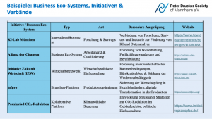 Business Eco-Systems sind dynamische Netzwerke, in denen unterschiedliche Akteure – Unternehmen, Forschungseinrichtungen, Start-ups und öffentliche Institutionen – zusammenkommen, um: