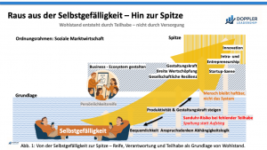 Haltung und Reife sind die innere Voraussetzung von Wohlstand – tragfähig werden sie aber erst durch wettbewerbsfähige ökonomische Rahmenbedingungen. Erst im gleichzeitigen Zusammenspiel von Individuum, Unternehmen, Gesellschaft und Staat entsteht nachhaltige Gestaltungskraft.