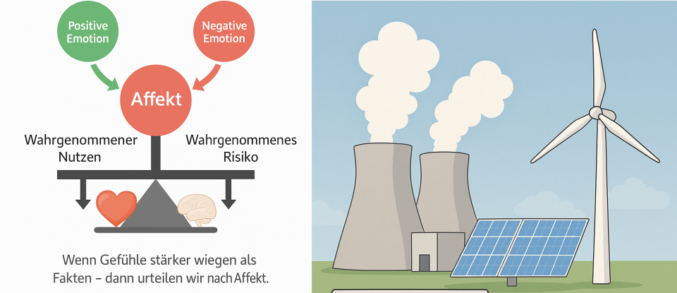 Besonders deutlich zeigt sich dieser Effekt in der Debatte um die Atomkraft: Wer sie grundsätzlich emotional ablehnt, nimmt die Risiken als besonders hoch wahr – und blendet zugleich mögliche Vorteile wie Versorgungssicherheit, Klimaschutz oder Prozesswärme für die Industrie aus. Dieses Muster ist empirisch nachgewiesen.