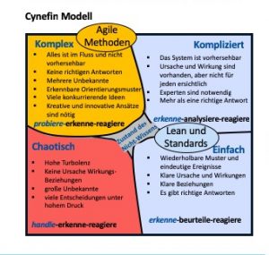 Im Sinne des Cynefin-Frameworks bewegen wir uns hier im komplexen Kontext: Ursache und Wirkung sind nicht eindeutig zu erkennen. Wissen entsteht erst durch Handeln – durch Prototypen, Experimente und Beobachtung.